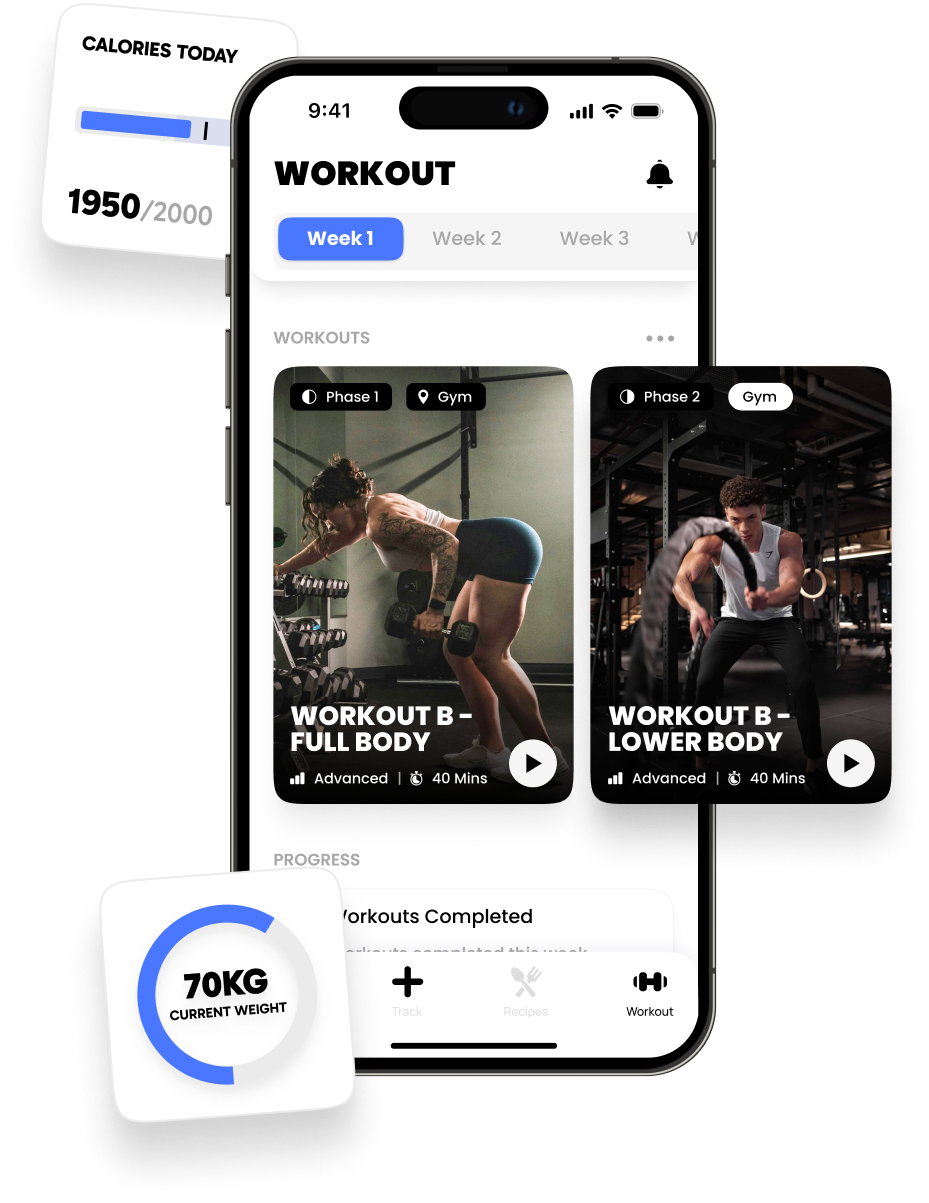 Custom workouts, progress tracking, recipes and more - all in one app. No guesswork.